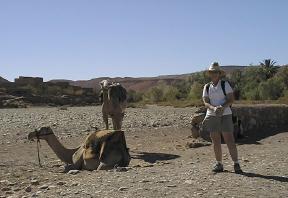 We hadn't seen any camels since Essaouira, so we couldn't pass up this snapshot of local color. Kathy and the camels are standing in what once was a riverbed.