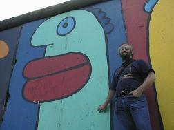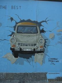 Berlin ten years after the wall fell is a funny place. You ask people what the biggest difference is now that West isn't separated from the East, and they tell you that there's a lot more traffic now! You have to look hard to even find a section of the Berlin Wall -- in the spontaneous orgy of destruction that marked the end of Soviet control over East Germany, nearly every meter of the wall was hammered to pieces. Only in an old industrial area between the Spree river and Holzmarkt street and north of the Oberbaumbrücke is the last remaining section of the wall. Berliners call it the East Side Art Gallery, and it contains much of the fading street art that once covered the length of the wall.